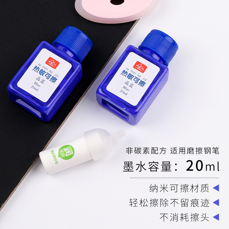 罗氏新升级第3代热敏可擦墨水瓶装钢笔用橡皮可擦写除晶蓝色蓝黑色小学生专用三年级儿童练字摩易擦钢笔水