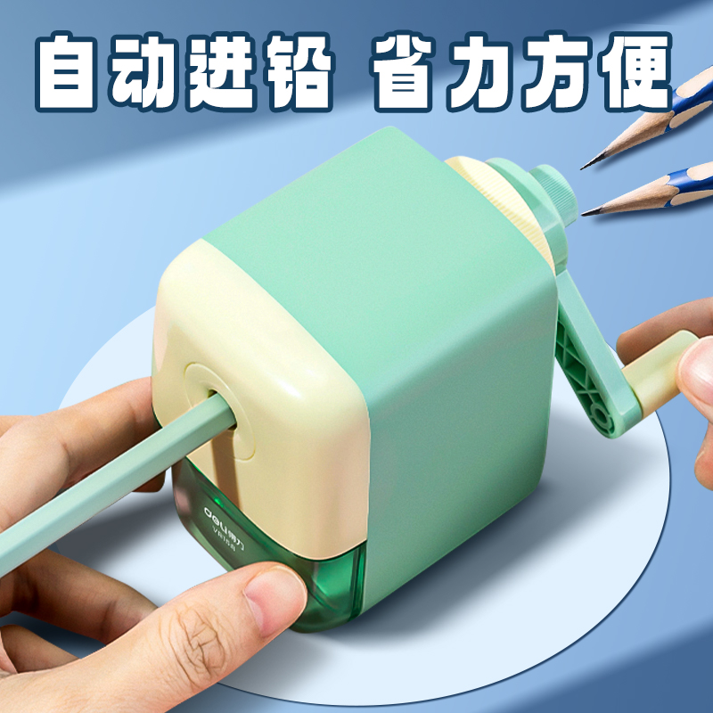 得力卷笔刀小学生专用手摇转笔刀儿童削笔刀自动进铅削笔器刨笔机削笔机卡通一年级铅笔刀文具刨笔刀幼儿园