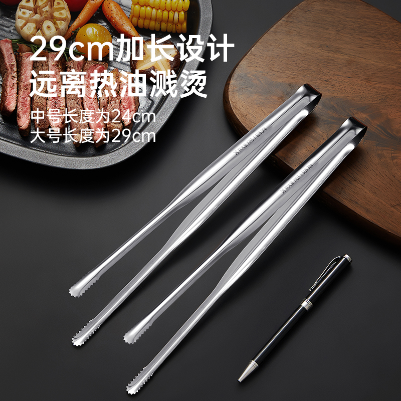 炊大皇304不锈钢食品夹家用烧烤夹牛排烤肉夹子厨房料理分餐夹