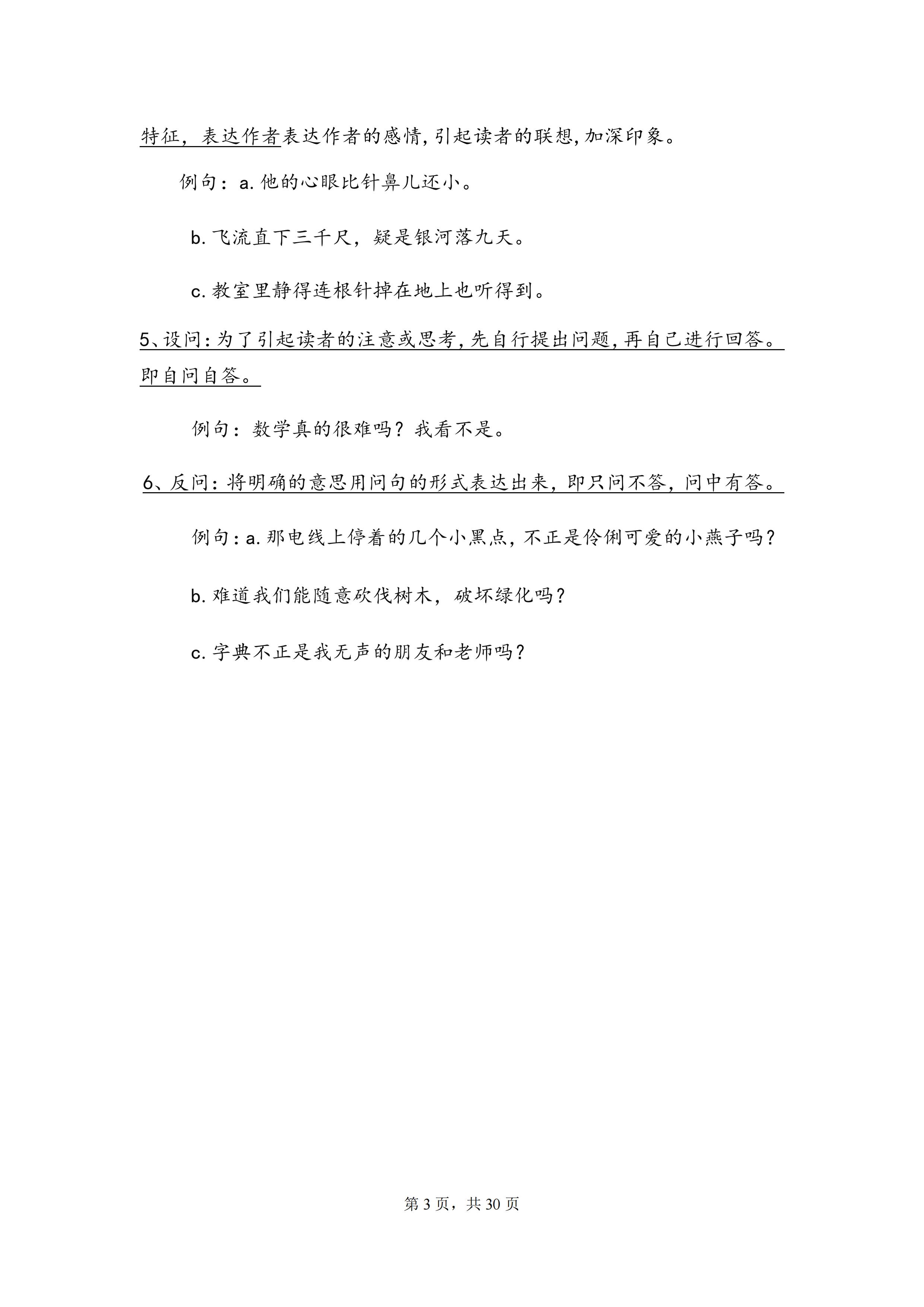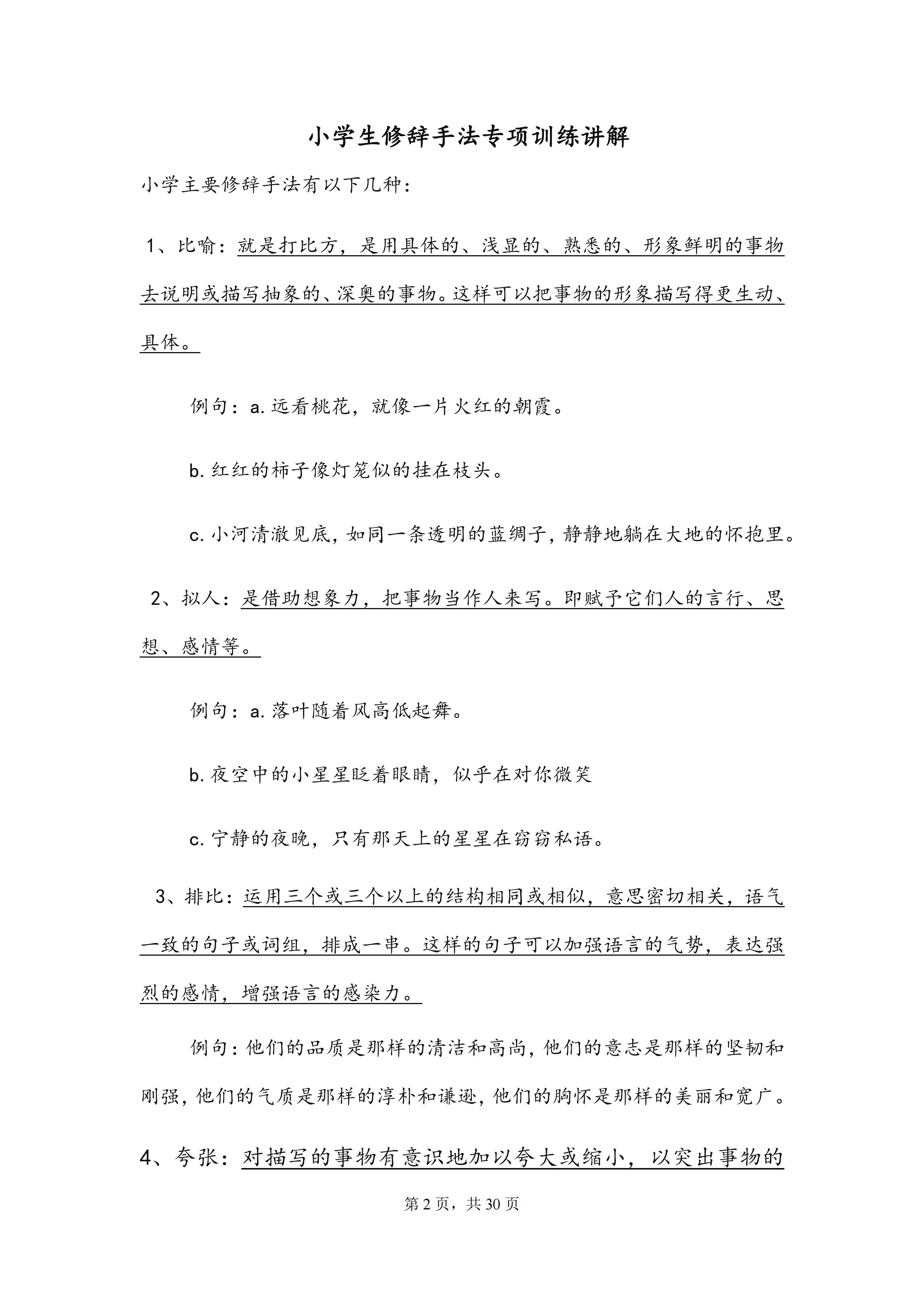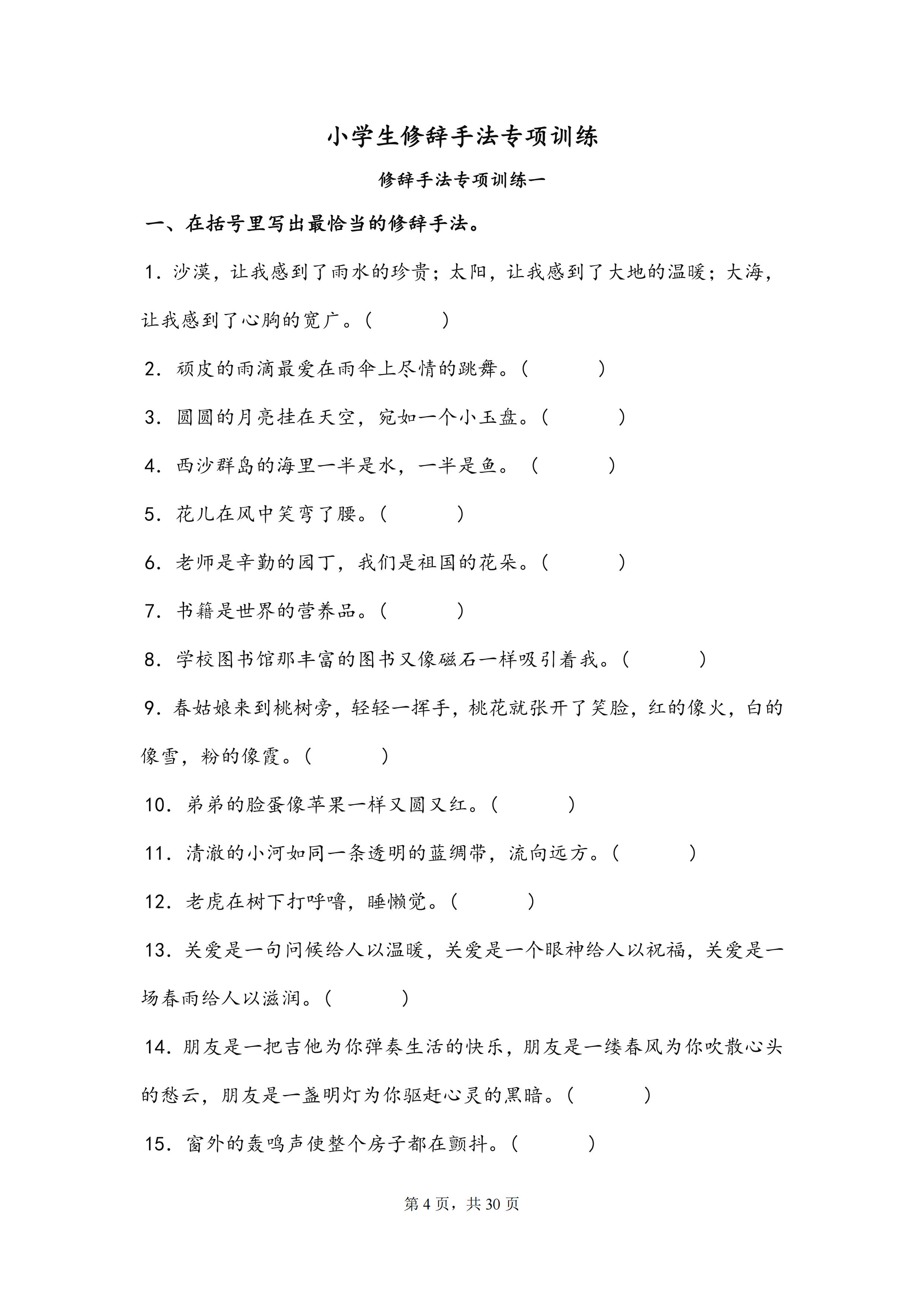 小学语文三四五六年级修辞手法专项训练判断选择改句子练习题本子