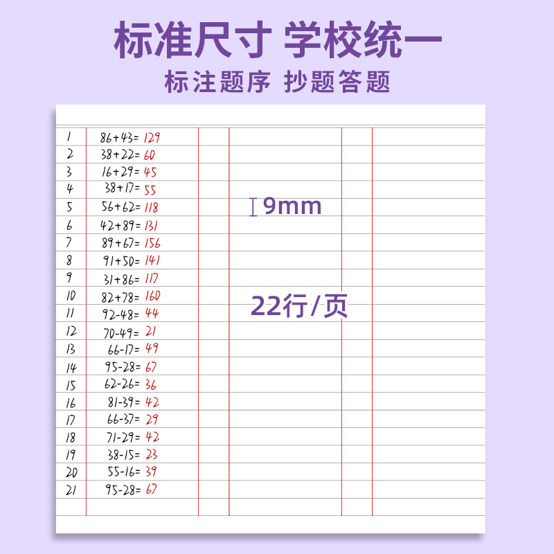 方形数学本小学生专用一二三四五年级作业本加法减法口算运算算术本练习册儿童笔记本本子加厚科目错题本16k