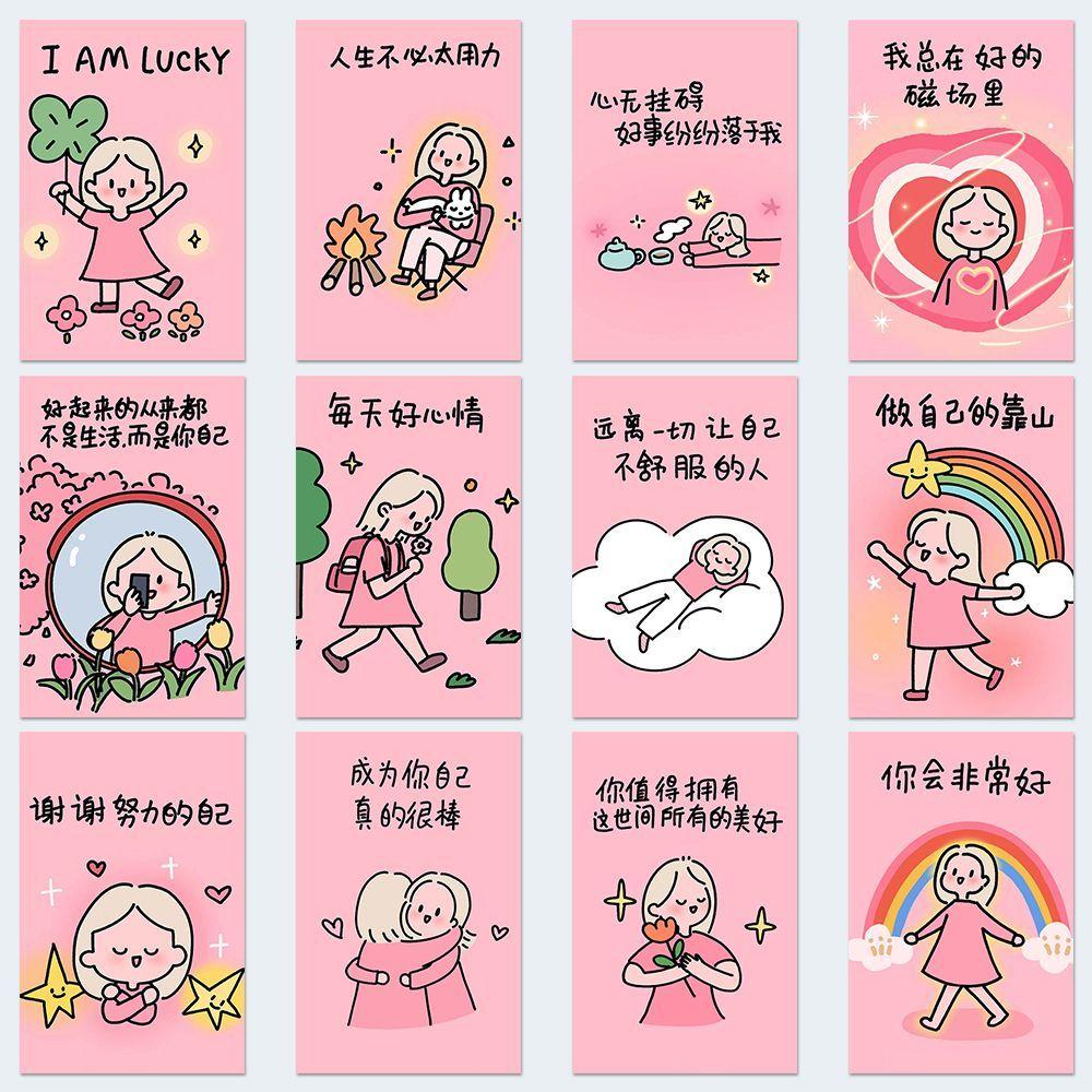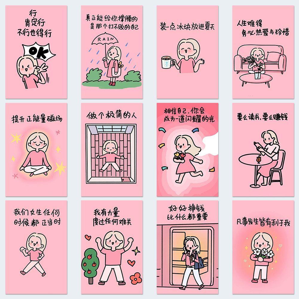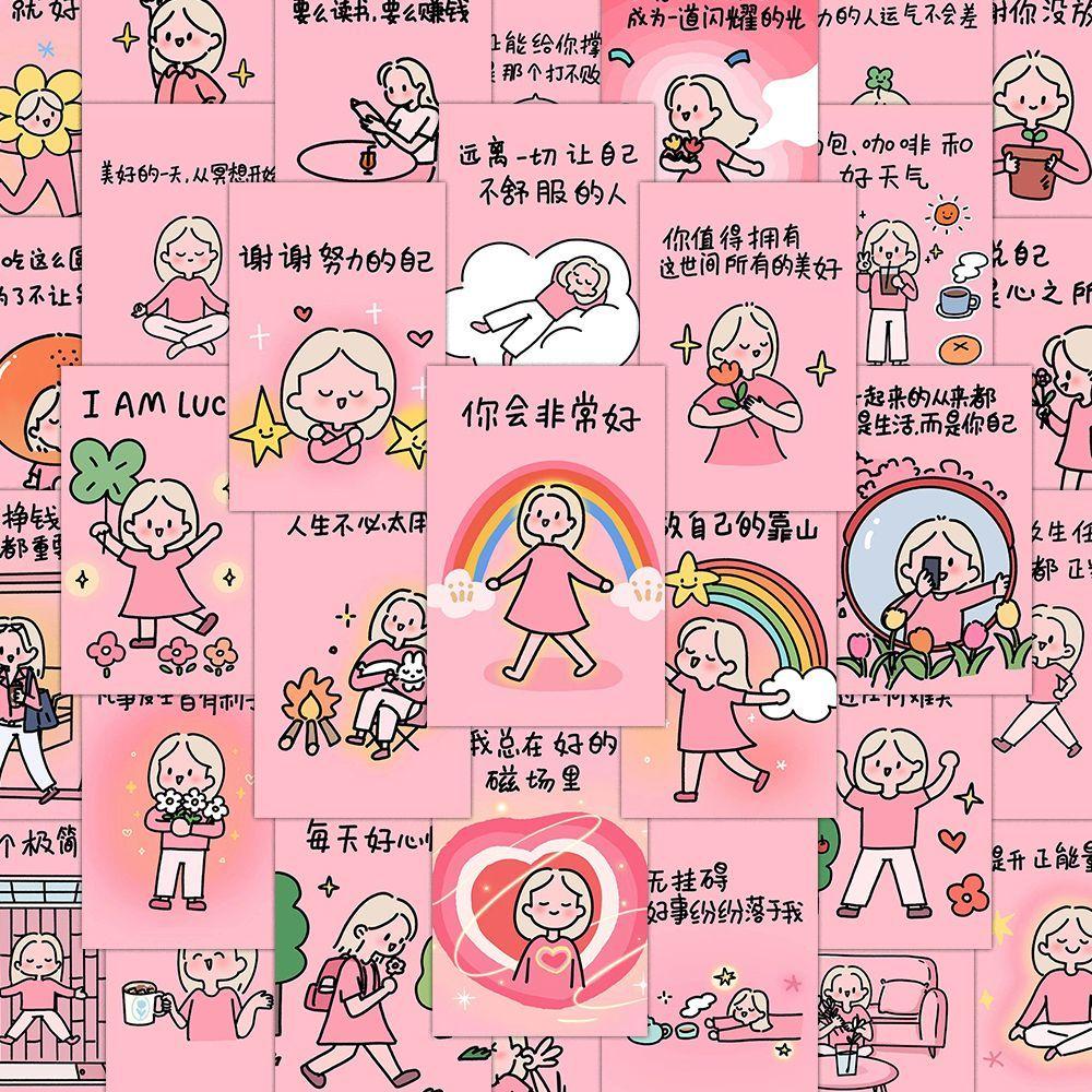 治愈插画自我救赎温暖创意多巴胺正能量反内耗励志桌面贴画108张