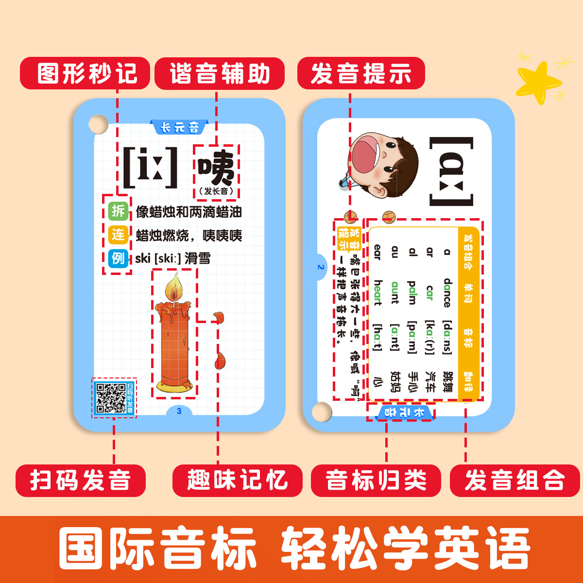 新版48个国际音标卡片和英语自然拼读教材趣味学速记训练单词思维