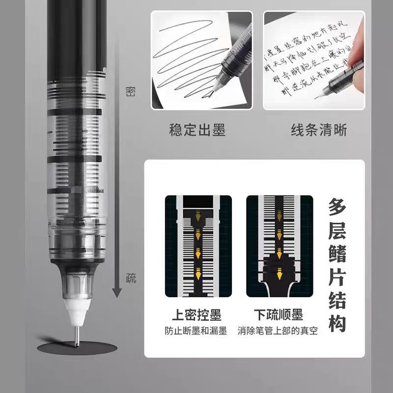 直液式走珠笔速干黑色中性笔大容量巨能写学生专用考试刷题针管笔