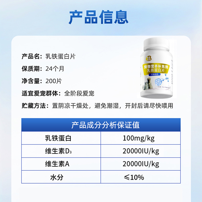 宠物乳铁蛋白片E维生素A猫多维营养补充剂猫咪专用调节免疫力狗狗