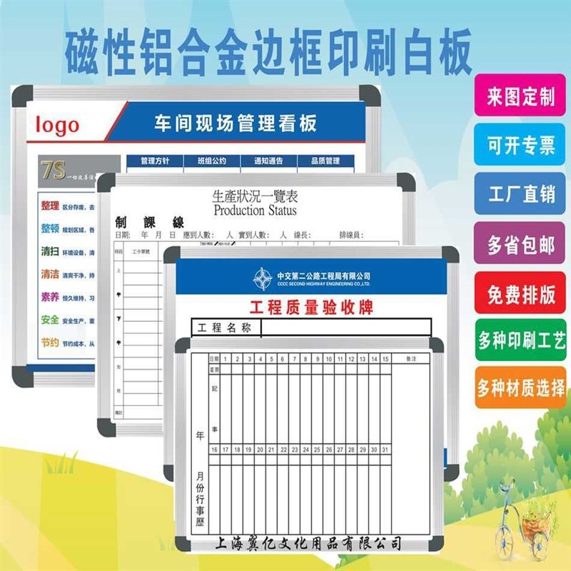 挂式印刷表格白板定制硬质磁性车间白板H订制背胶覆膜可擦写UV喷
