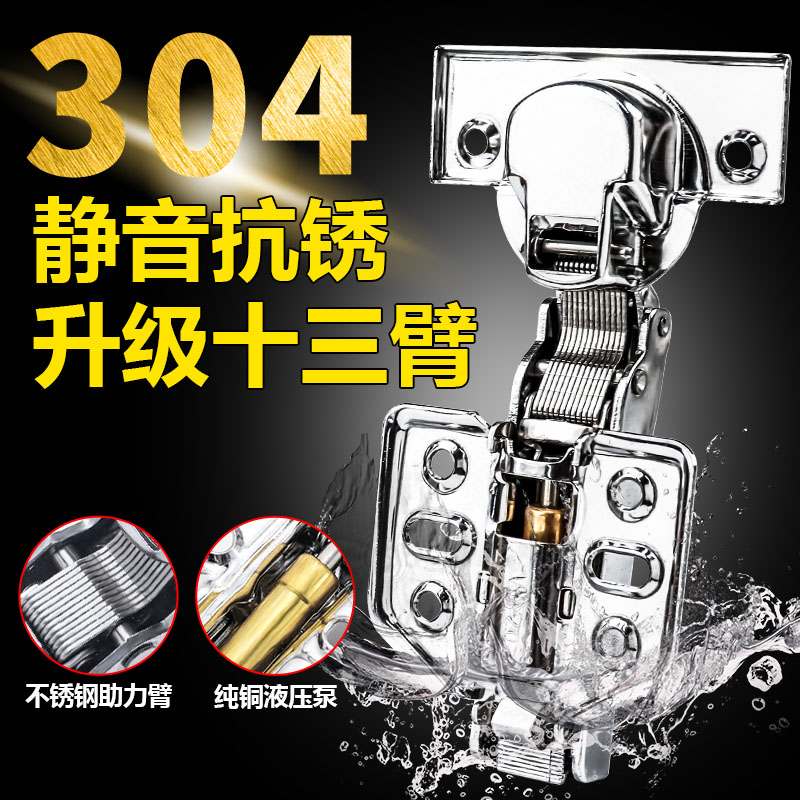 304不锈钢液压阻尼缓冲橱柜门铰链飞机弹簧合页衣柜五金折叠合叶