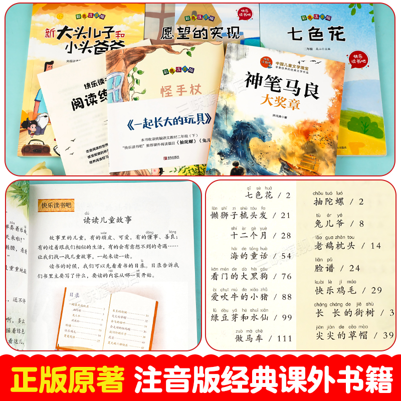 神笔马良二年级下册必读的课外书正版5册注音版快乐读书吧2下老师推荐阅读七色花一起长大的玩具愿望的实现人教版父与子常识趣味