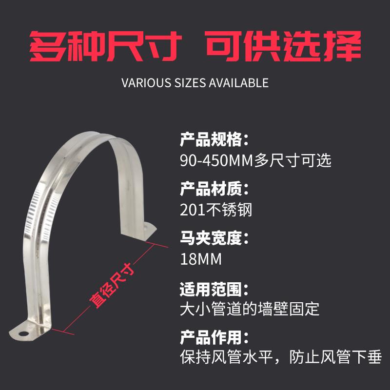 大规格u型卡扣抽油烟机排烟管骑马夹不锈钢固定墙上软风管锁夹箍