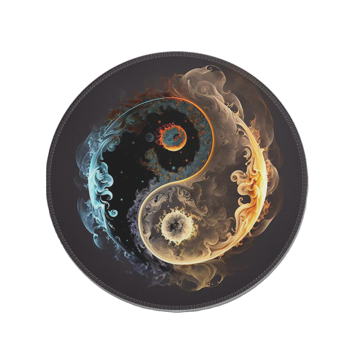 太极阴阳星空烈焰寒云国潮鼠标垫小号圆形耐脏防滑锁边加厚可水洗