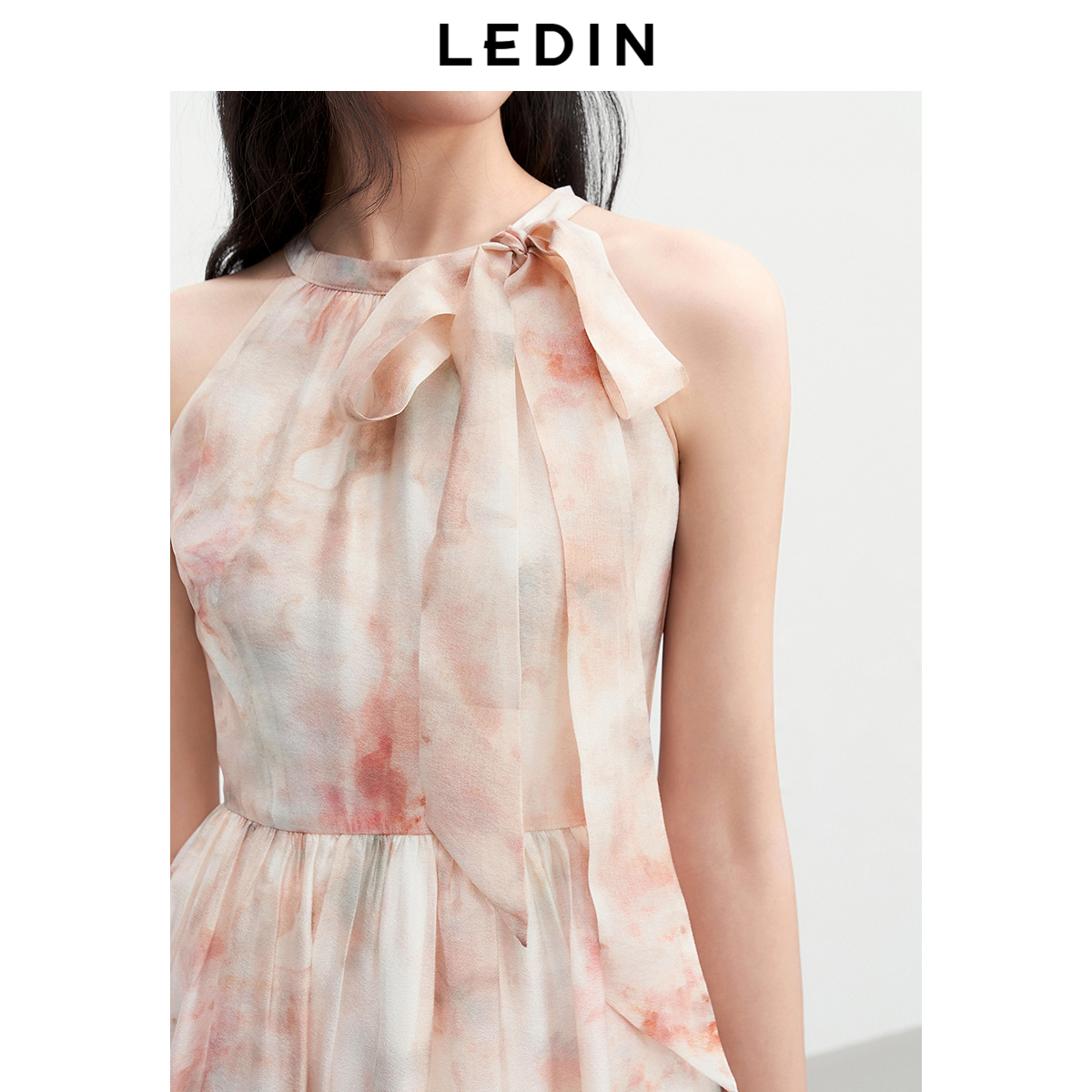 【植物系】乐町晕染挂脖长裙女2025夏季新款无袖吊带蝴蝶结连衣裙