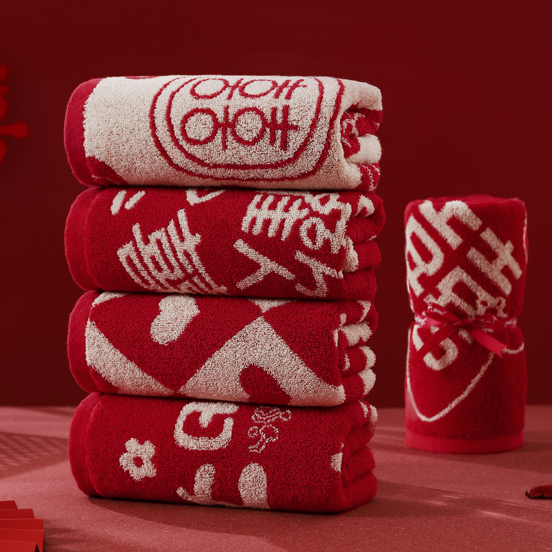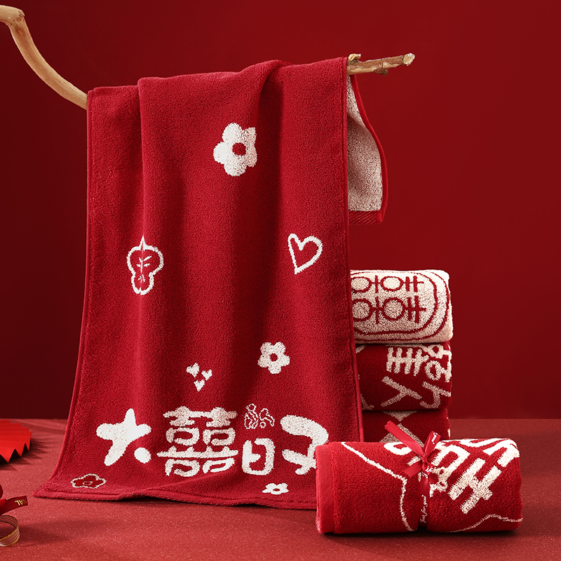厂家纯棉毛巾结婚婚庆喜字喜庆婚礼陪嫁面巾不掉毛不掉色伴手礼