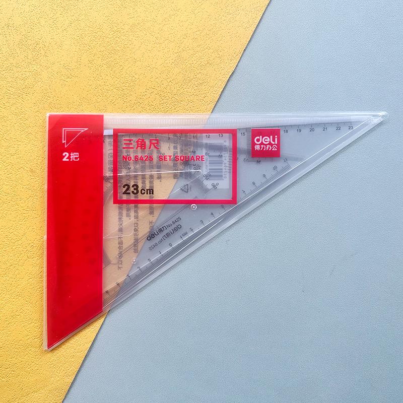 得力6425三角尺套装23CM直角三角尺等腰三角尺透明绘图尺PS材料