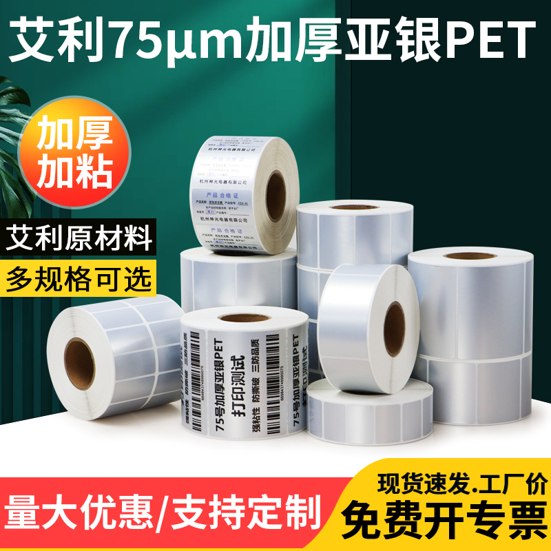 艾利7.5丝加厚亚银消银龙哑银PET加粘防水不干胶电器电子设备银色法森标签纸成卷条码打印条形码定制订做印刷