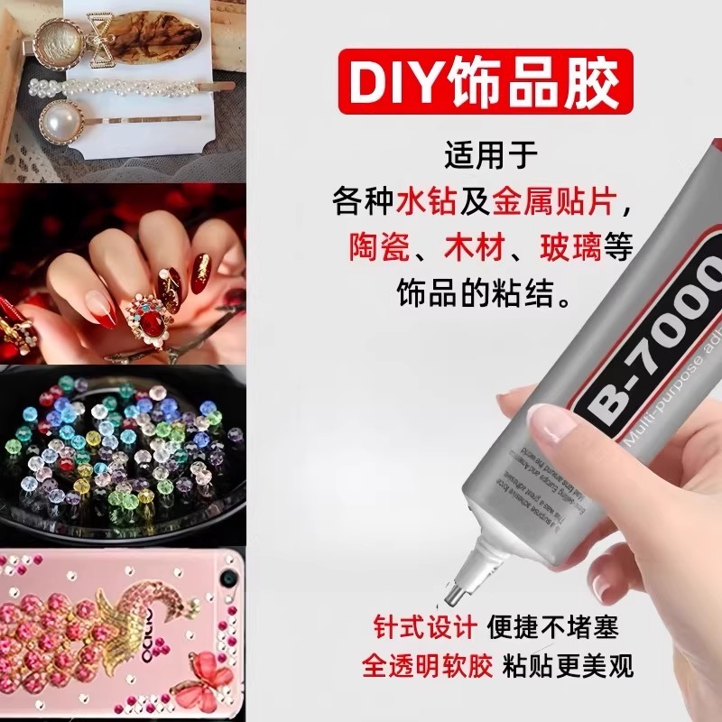 b7000粘珠宝胶镶嵌专用沾首饰品珍珠耳钉宝石玉石戒指托面透明无痕的粘钻树脂胶水防水修复软胶美甲针头修补