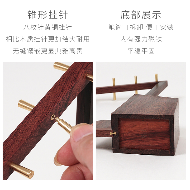 特价清仓笔挂简约乐山可拆笔架毛笔挂5针多支笔架笔搁 红木/铜 直角设计可置于桌角文房四宝书房摆件展示架