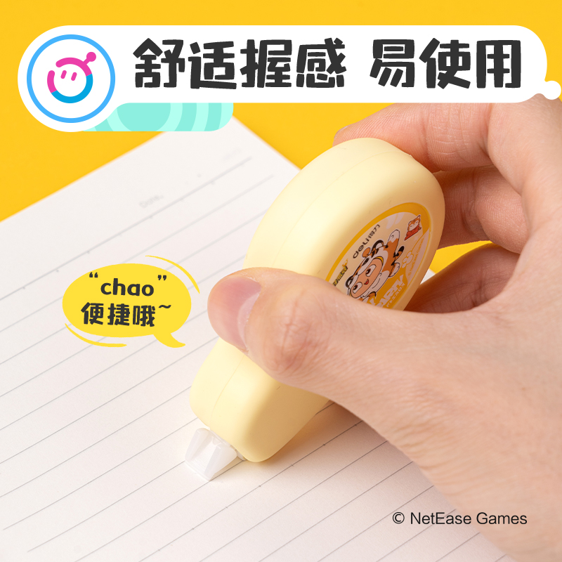 得力蛋仔派对修正带耐摔耐用不易断带高颜值学生用顺滑涂改带大容量硅胶外壳12米可爱改正带