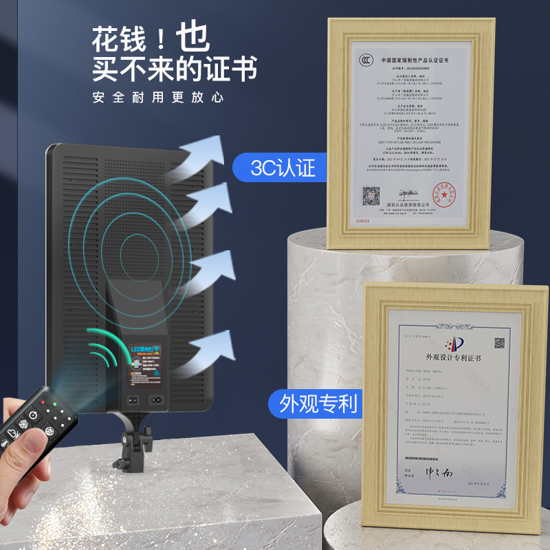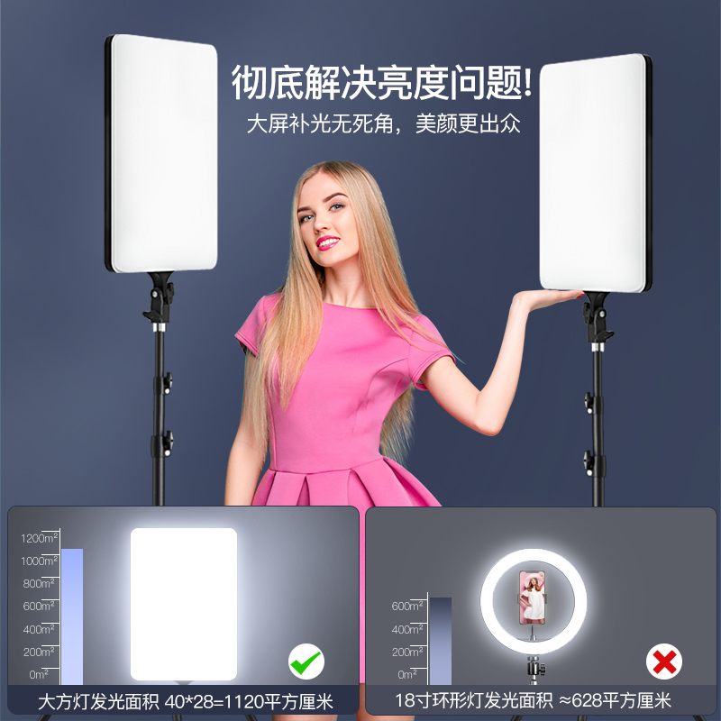 众靓直播补光灯方形平板拍照打光灯直播间专用柔光专业拍摄美食led视频主播美颜桌面室内珠宝设备影棚摄影灯