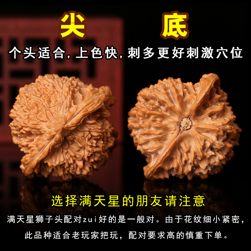 原色满天星文玩核桃把玩密纹细选老树果狮子头男女盘玩手把件一对