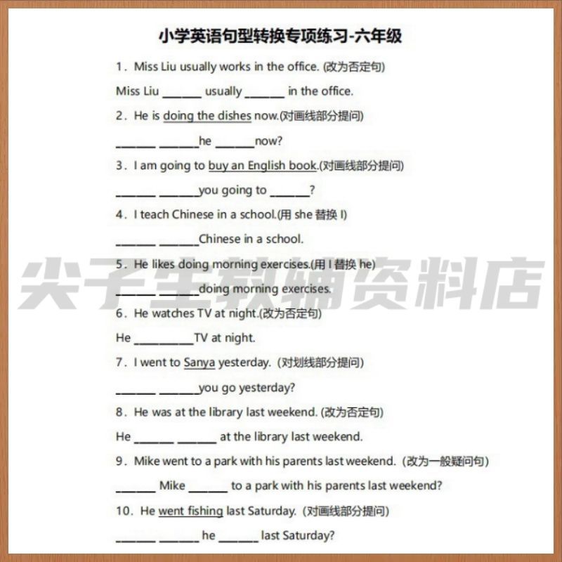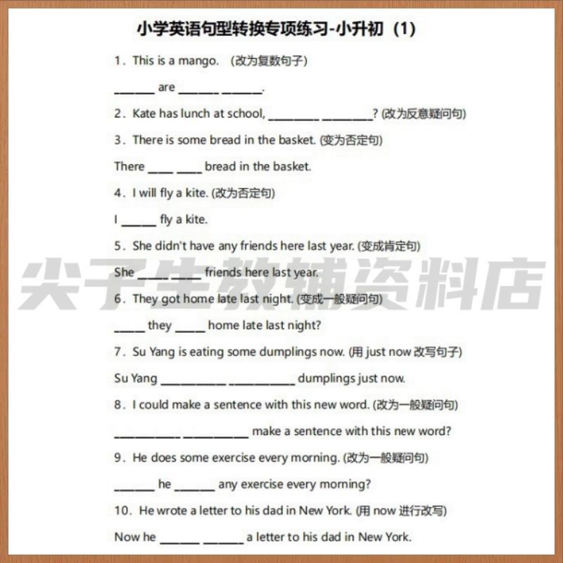 通用小学英语三年级句型转换复数否定肯定陈述同义反义句专项练习课业本