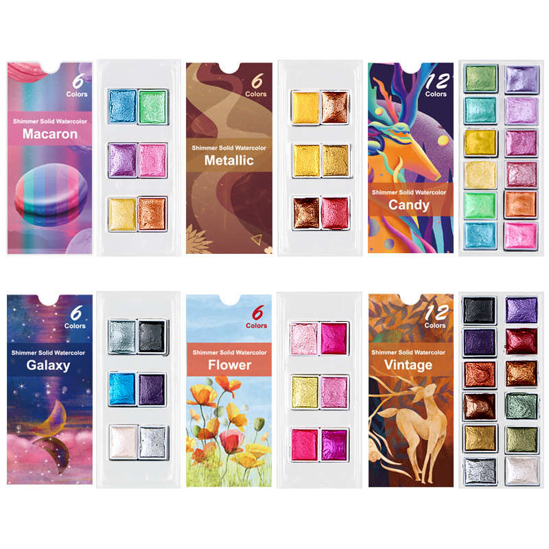 习勒6色12色固体水彩颜料套装美甲颜料珠光金属美术颜料绘画批发