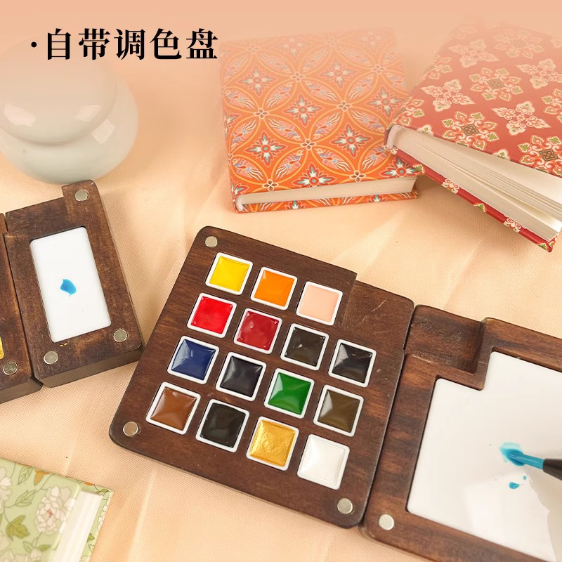 史明克迷你水彩颜料盒和小本子国风画画随身携带套装小画板画本