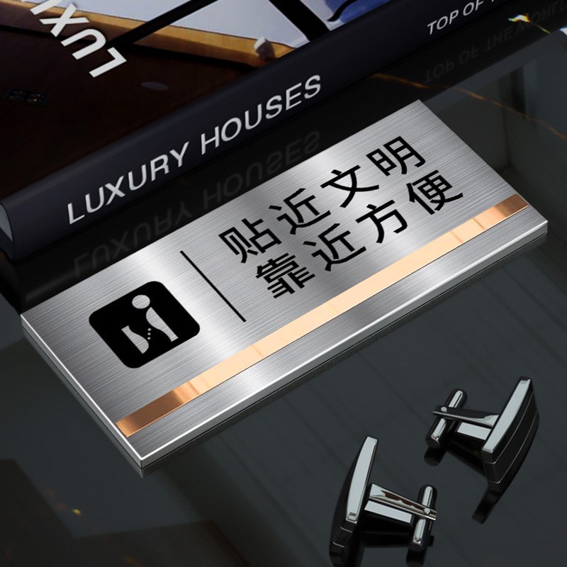 现货速发贴近文明靠近方便不锈钢标识牌厕所卫生间商场向前一小步