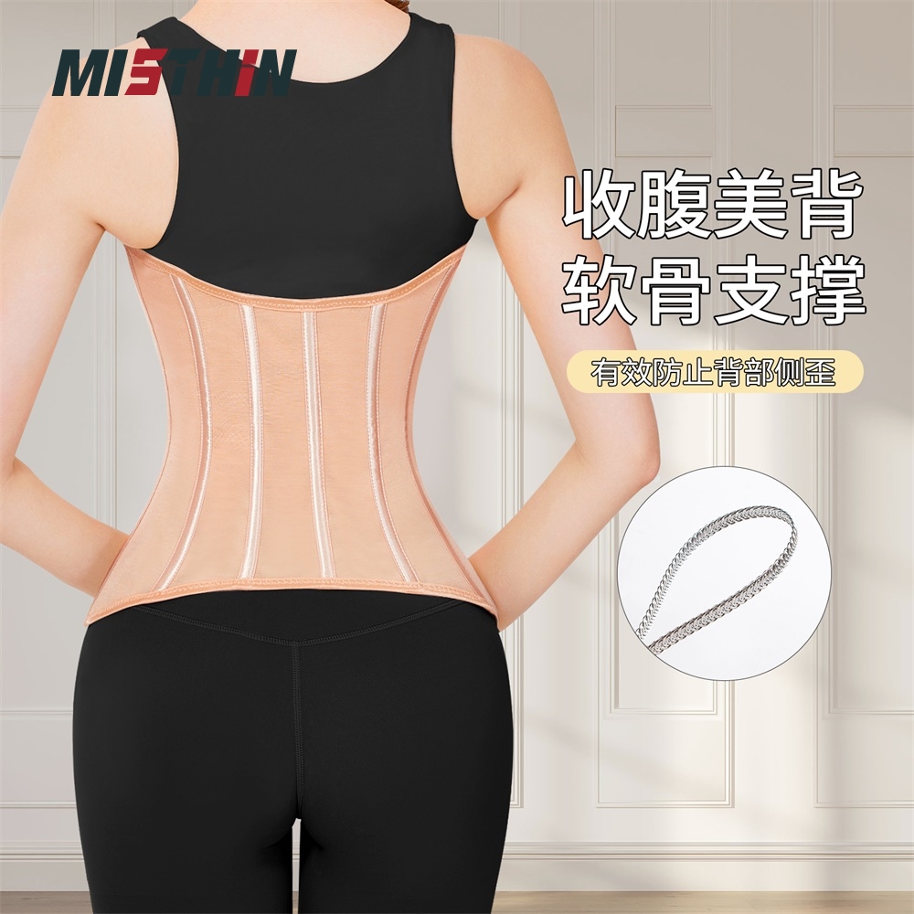 MISTHIN肩带升级背心式网纱塑身衣强力收腹托胸挺腰收背束腰带女