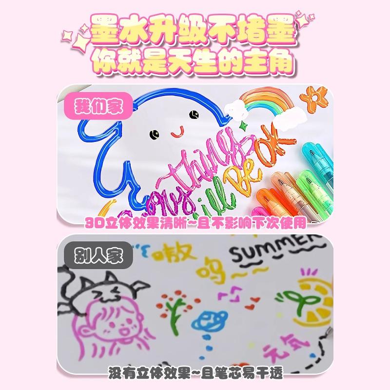 三年二班×魔卡3D立体果冻笔轮廓笔果汁笔多色手帐笔日系笔绘画笔涂鸦学生中性笔可爱创意少女心diy荧光笔