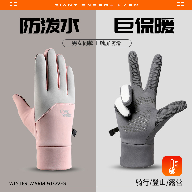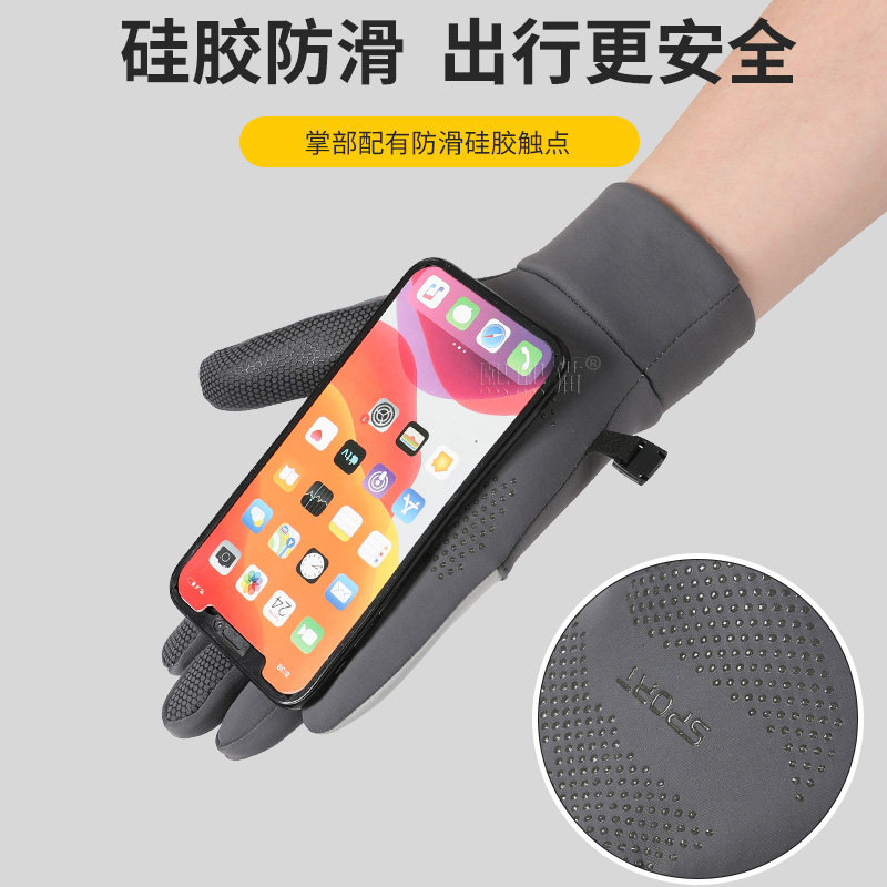 骑行手套女冬季保暖加绒防风防寒加厚可触屏电动车户外跑步手套男