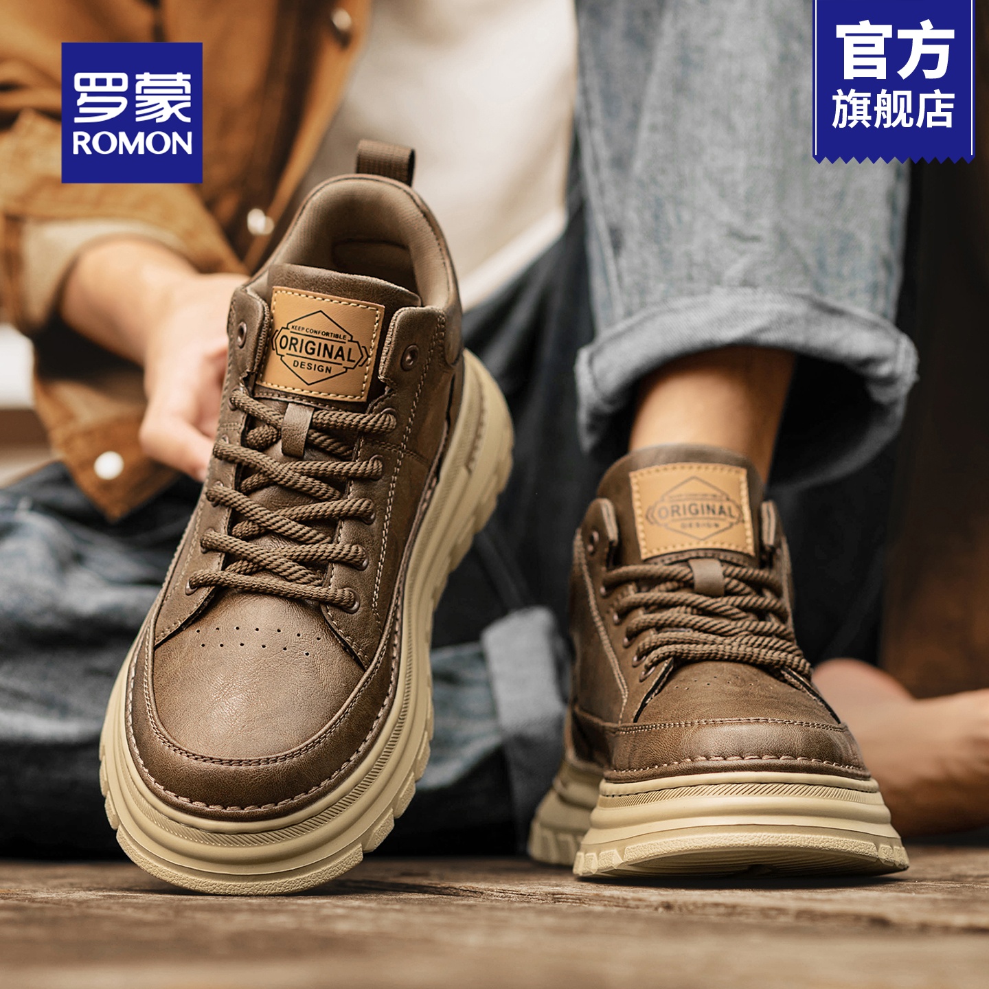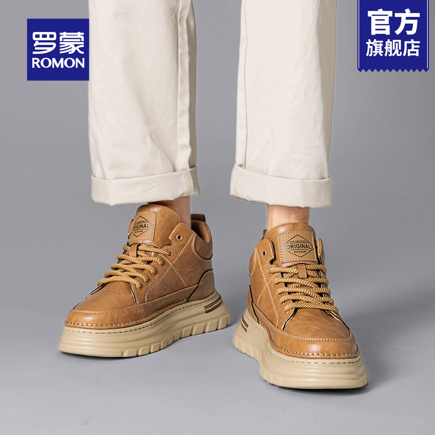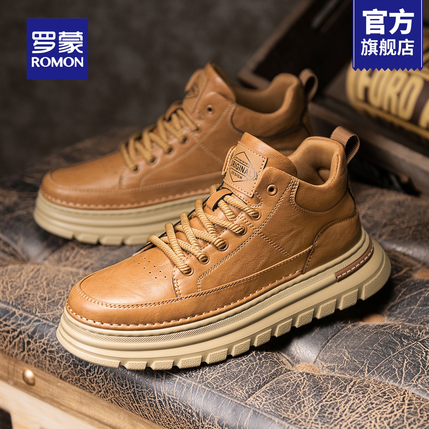 罗蒙马丁靴男2025新款秋季高帮工装男鞋厚底增高中帮大黄靴男款RM