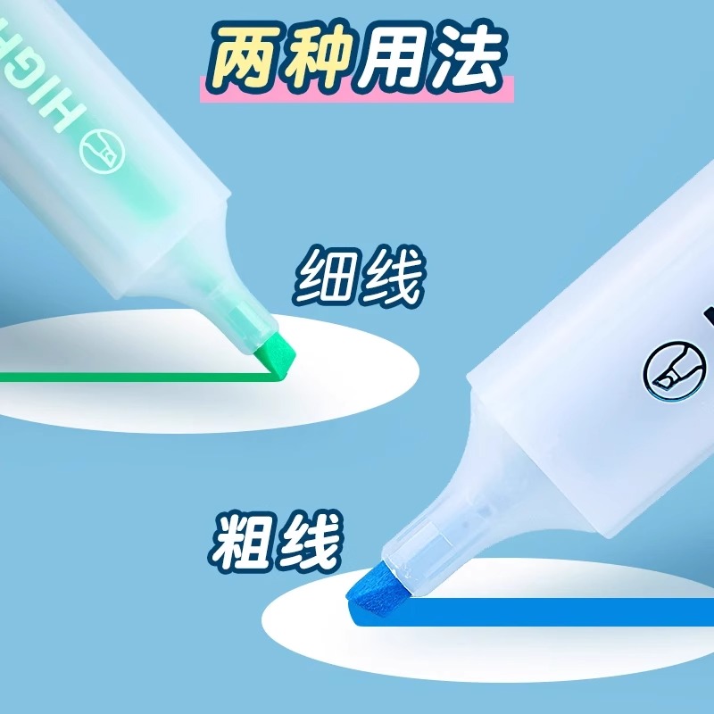 点石三角杆荧光笔12色记号笔简约学生划重点标记笔套装柔色手账笔