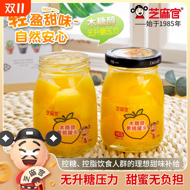 芝麻官木糖醇黄桃罐头水果捞255g*6罐玻璃鲜山楂水果罐头橘子零食