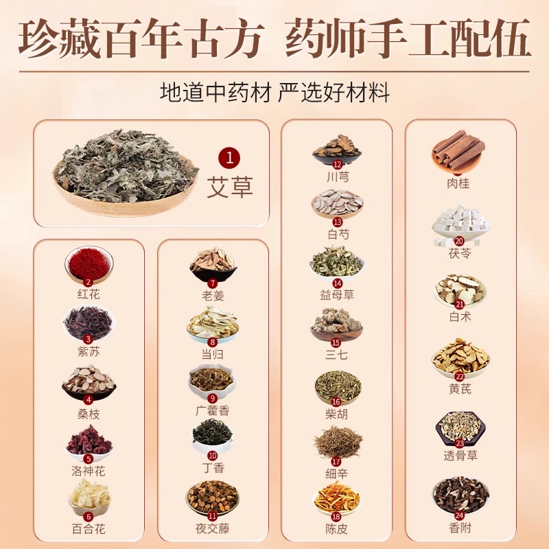 左左女泡脚药包湿气艾叶生姜祛寒足浴包去男女士助睡眠发汗超大包