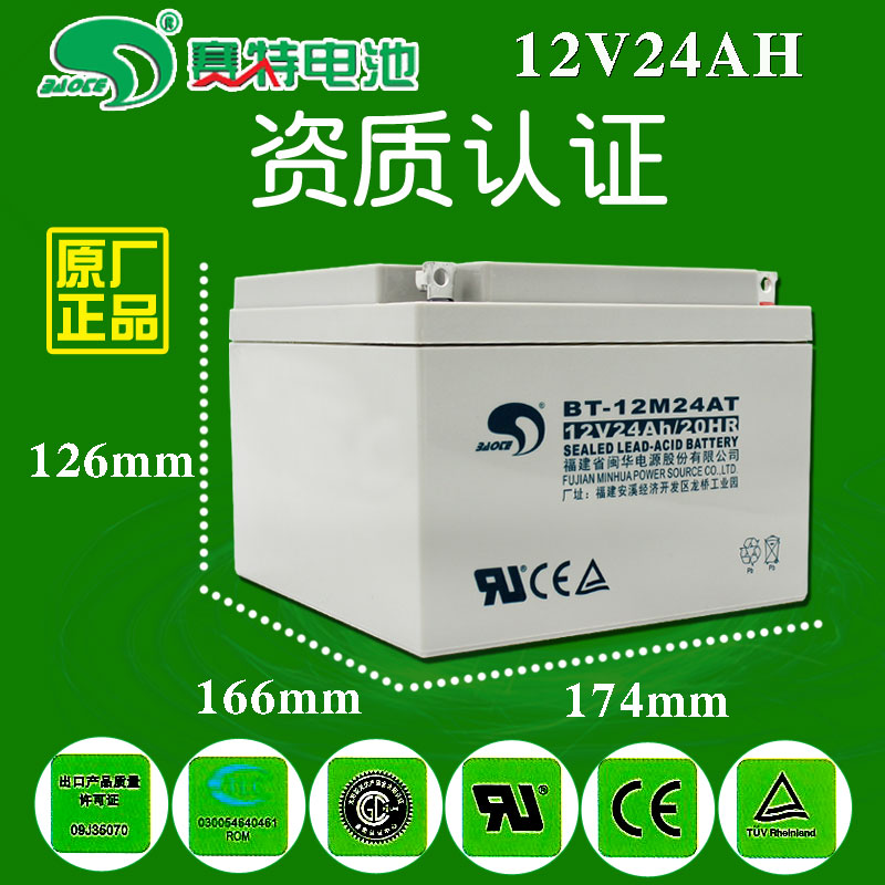 赛特BT-12M24AT电瓶12V24AH/20HR铅酸蓄电池消防主机UPS备用电源