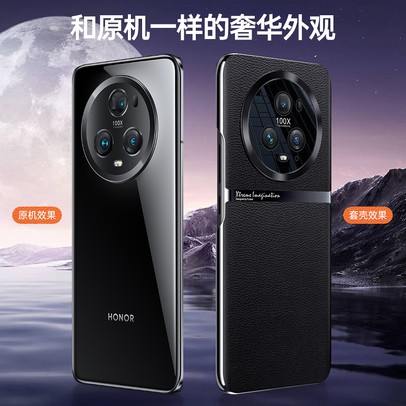 适用荣耀magic5手机壳新款magic5pro保护套honor镜头全包素皮外壳至臻版防摔5g曲屏mgaic男女高级感适用