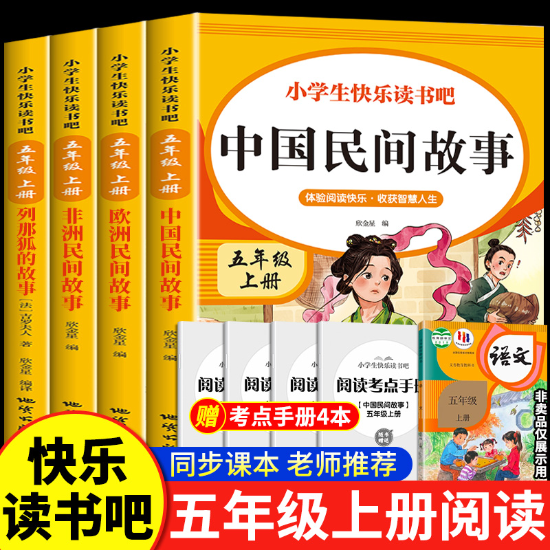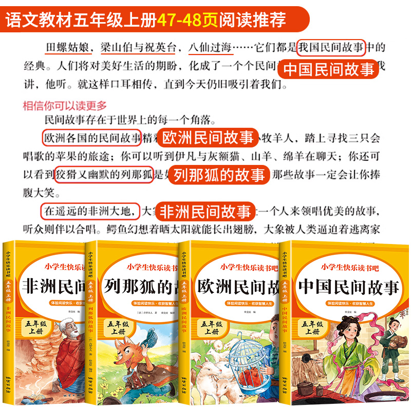 中国民间故事五年级上册快乐读书吧全套4册 必读的课外书正版欧洲非洲田螺姑娘精选列那狐的故事5上经典书目课外阅读书籍老师推荐