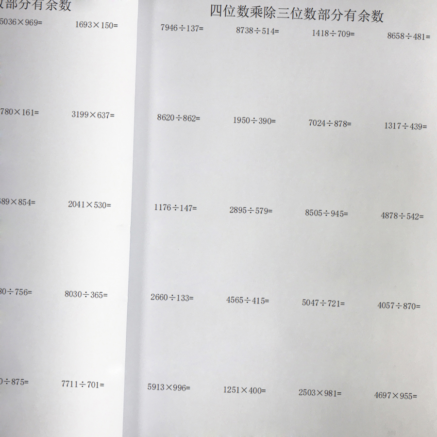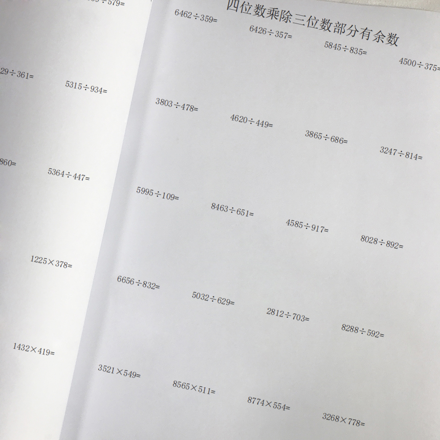 四4位数除以乘以3三位数整除有余数竖式除法专项练习本