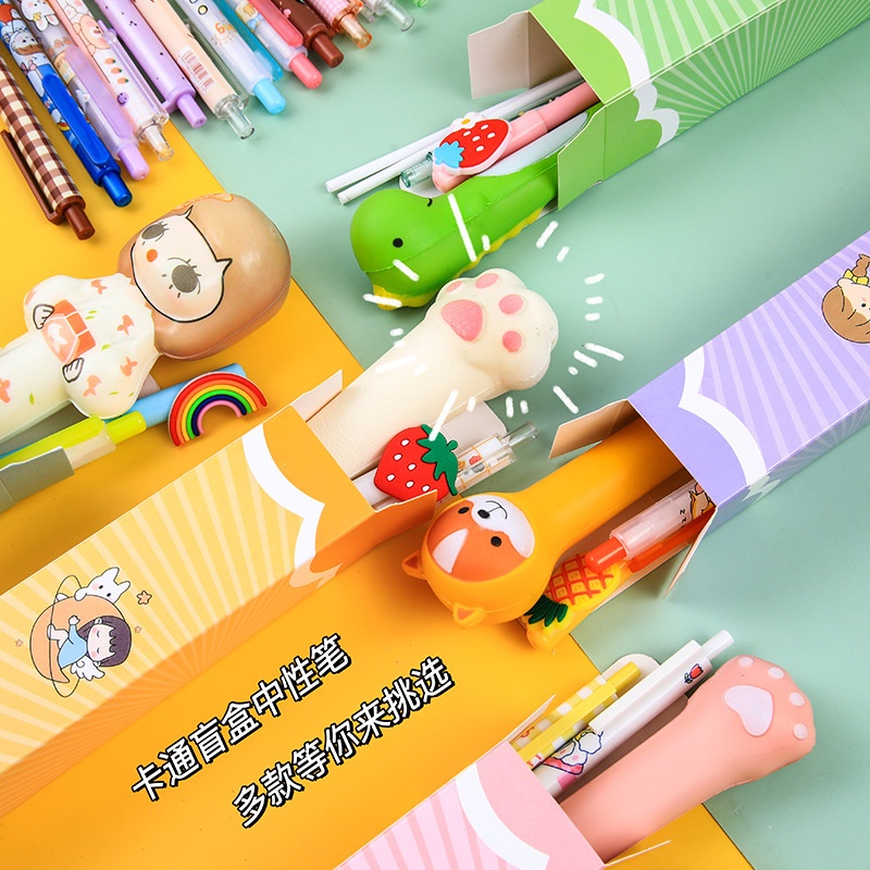 学生创意卡通网红盲盒笔套装 儿童书写工具减压笔中性笔礼品奖励