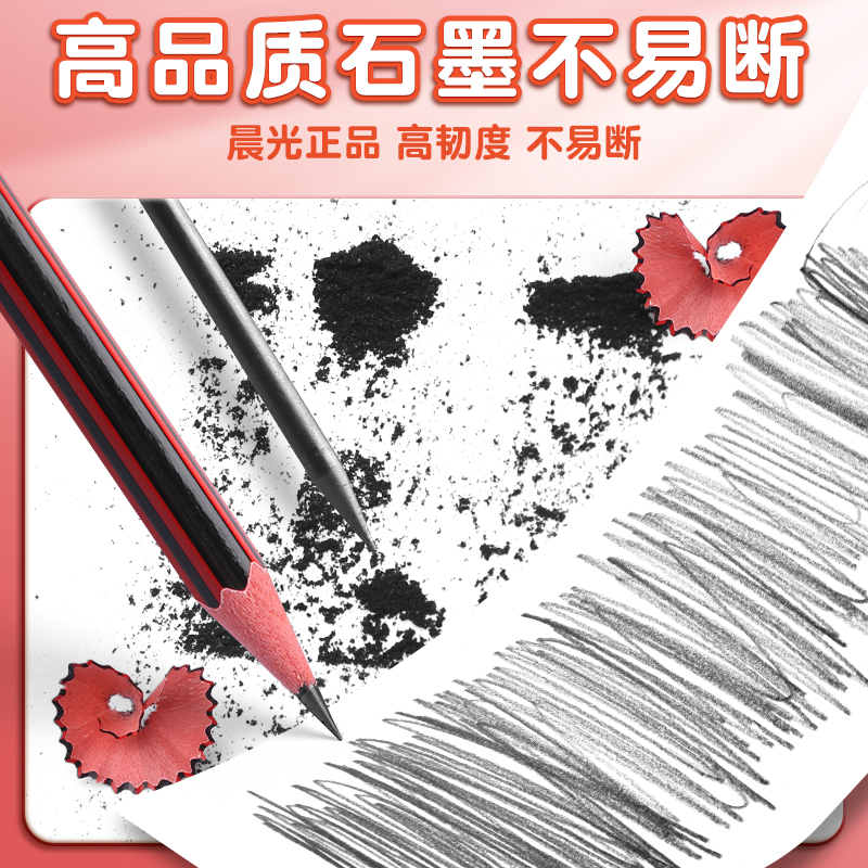 晨光小红杆铅笔2b小学生专用一年级二年级安全无铅毒卷笔刀橡皮六角笔杆易抓握学生考试用答题卡hb木杆涂卡笔