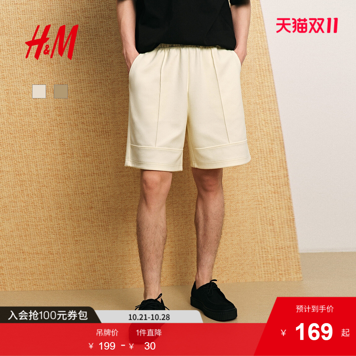 HM男装休闲裤2025秋季新款弹性耐穿垂坠感宽松棉质短裤1288873