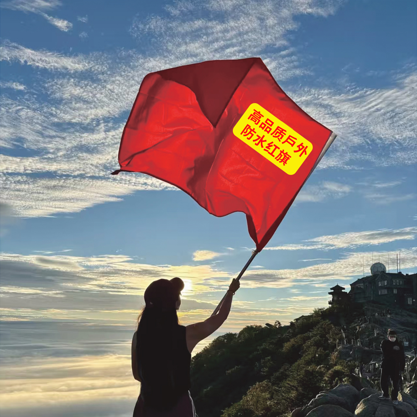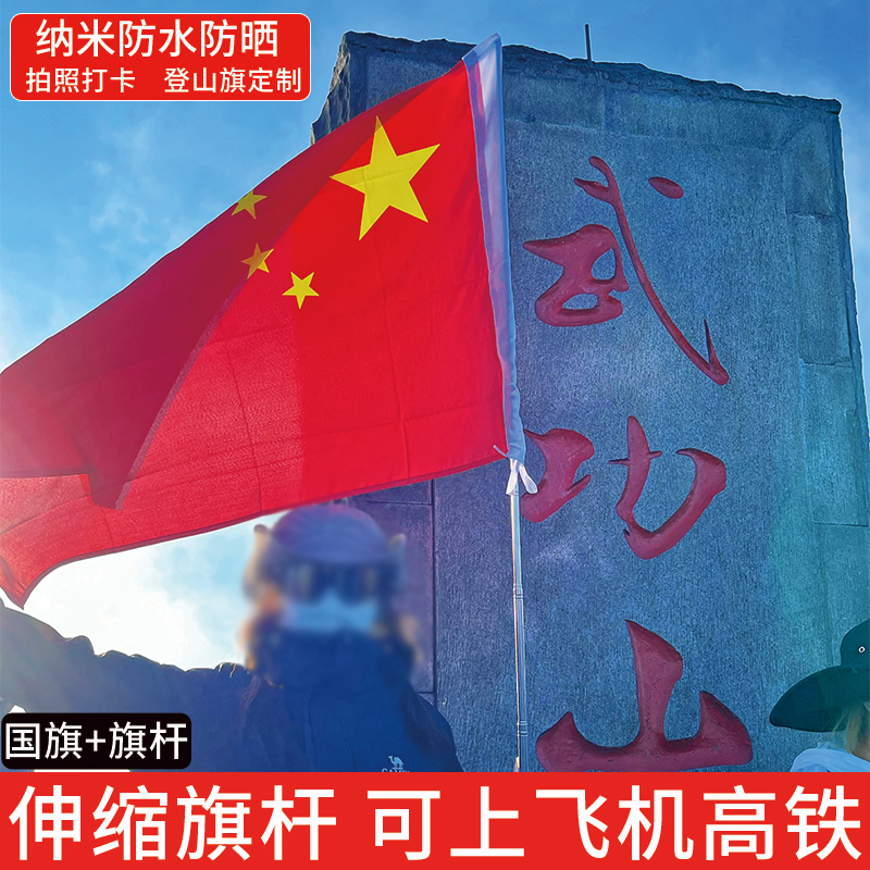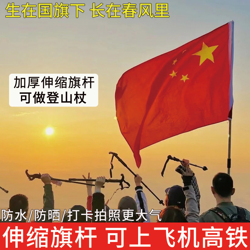 加厚登山国旗户外爬山红旗旗帜中国五星红旗武功山红旗定制拍照打卡手持大红色旗子国旗伸缩杆旗帜定制定做