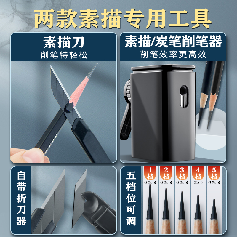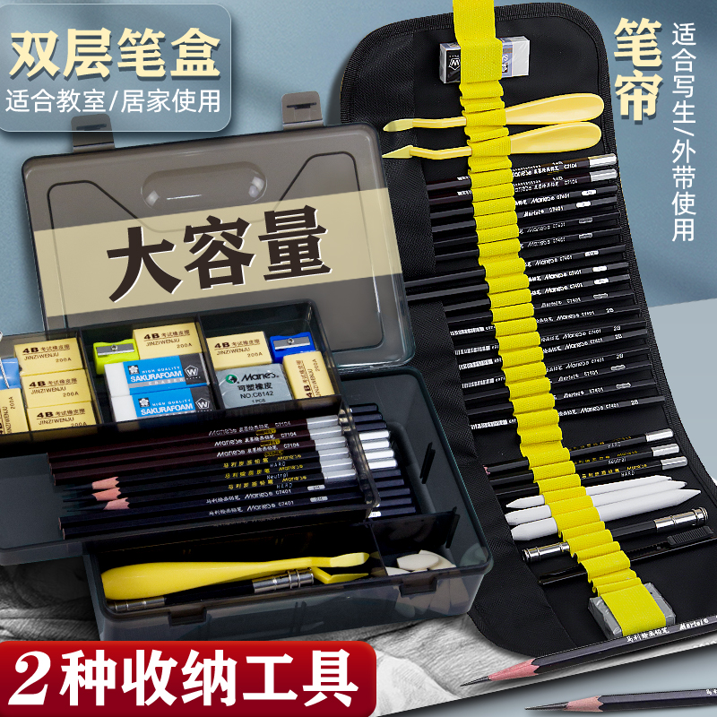 马利铅笔素描工具套装美术生专用铅笔入门基础全套绘画素描笔初学者学生画画马力速写炭笔专业2b8b2比学生用