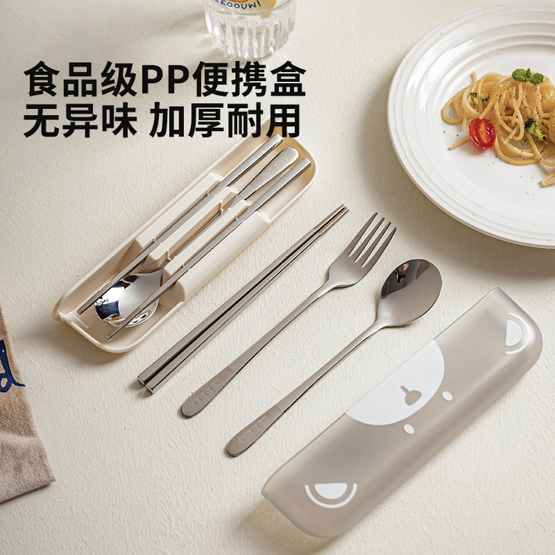 摩登主妇筷子勺子套装一人用316不锈钢便携餐具学生收纳盒三件套