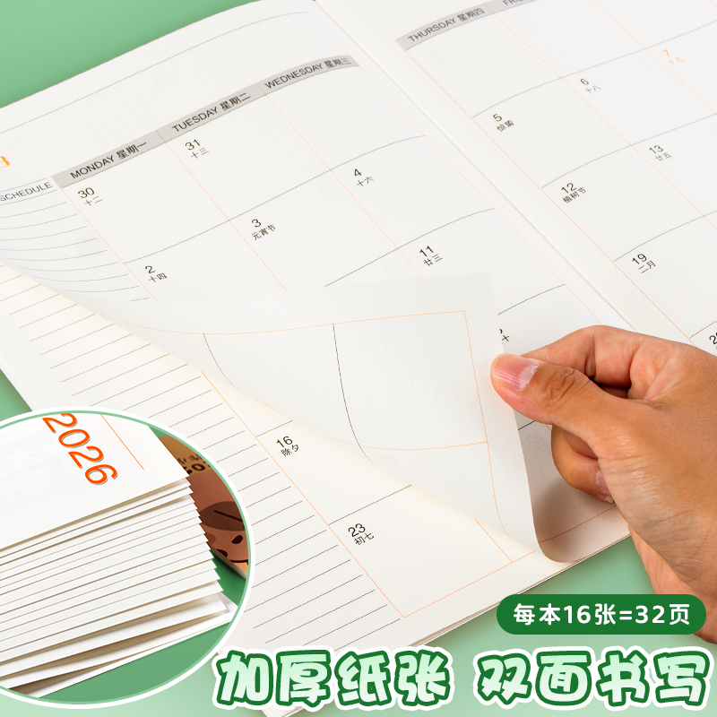 熊猫胖达2026年卡通A4工作小秘书月计划本日程本日历效率提升学生每日自律打卡笔记本子logo定制商务记事本子