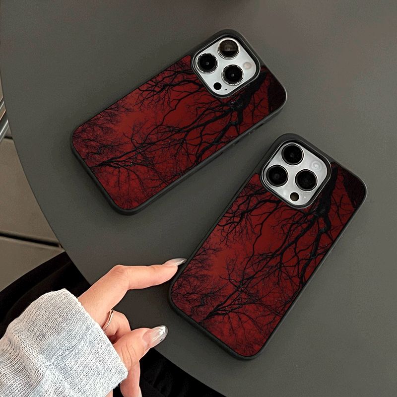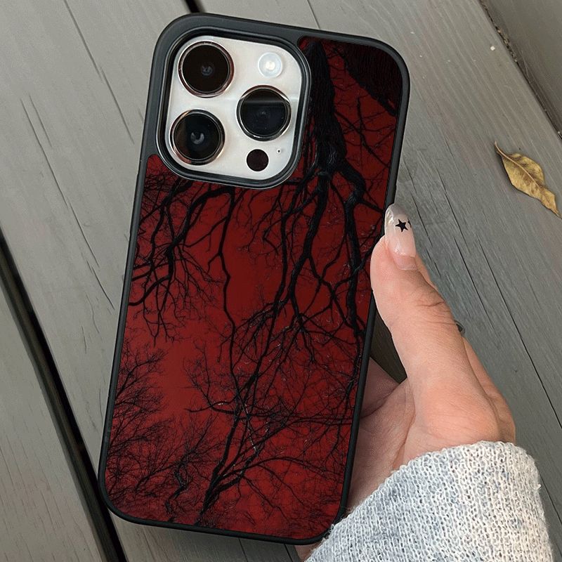 树枝血色红底适用于苹果15手机壳iPhone15promax新款14plus女款13pro高级感12硅胶全包防摔11个性创意保护套