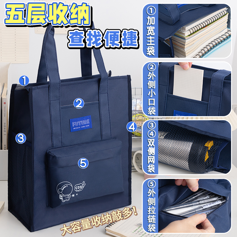 学生补习袋帆布手提袋大容量补课包男生女孩小学生拎书袋考试专用作业文件袋高颜值儿童学习书包补课袋手提包