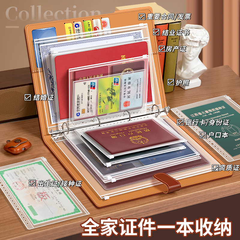 家用证件收纳包宝宝出生证家庭重要房本文件袋户口本证书保护套册大容量结婚证护照房产证多功能资料册高颜值