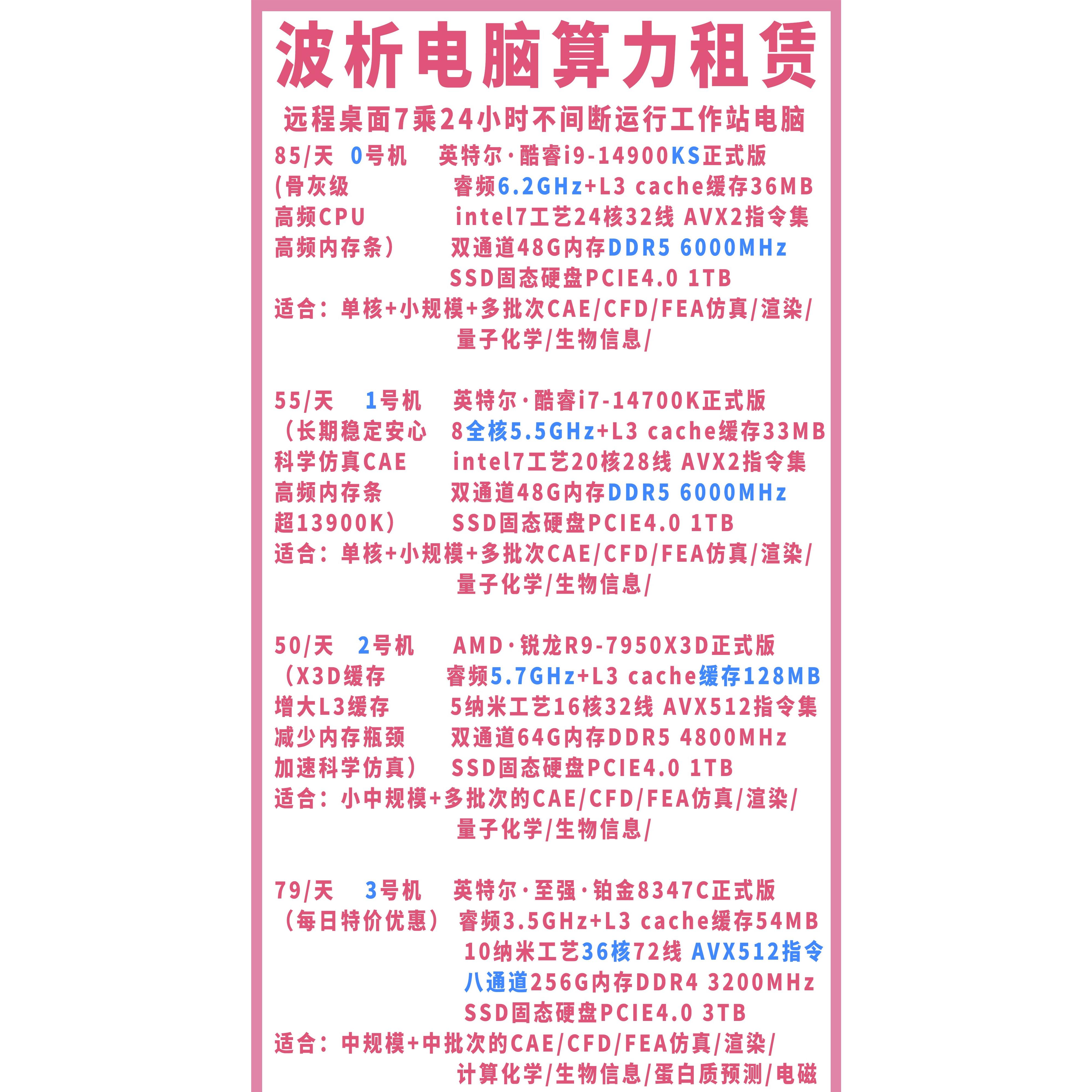 14900KS远程电脑出租用仿真comsol高主频i9服务器级工作站matlab