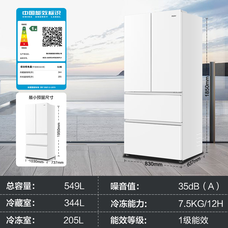 【双系统】以旧换新补贴海尔冰箱小红花549L法式多门风冷无霜家用